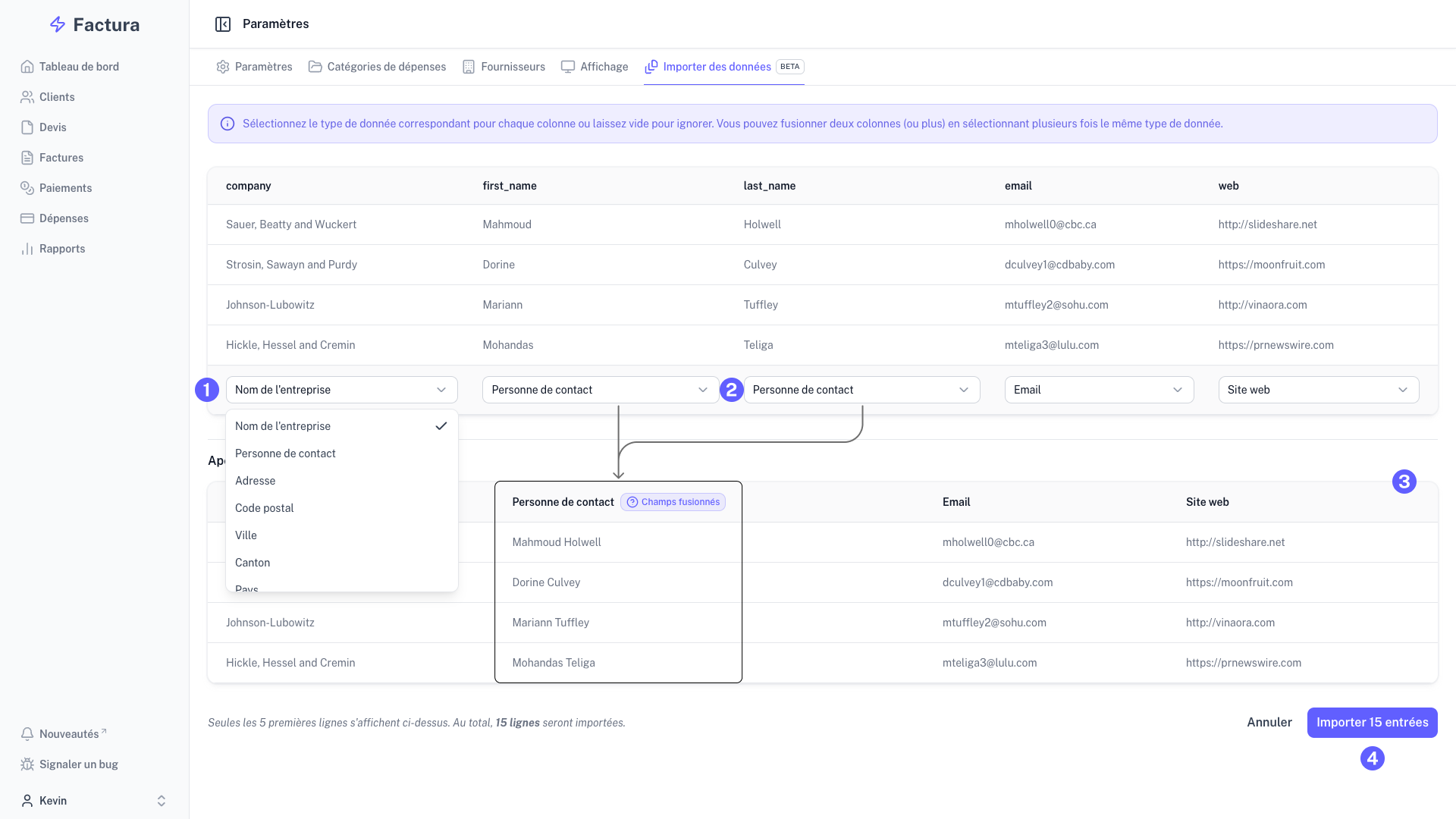 L'import des données prend quelques secondes. Une fois terminé, vous pouvez retrouver les nouvelles données importées dans la section "Clients".